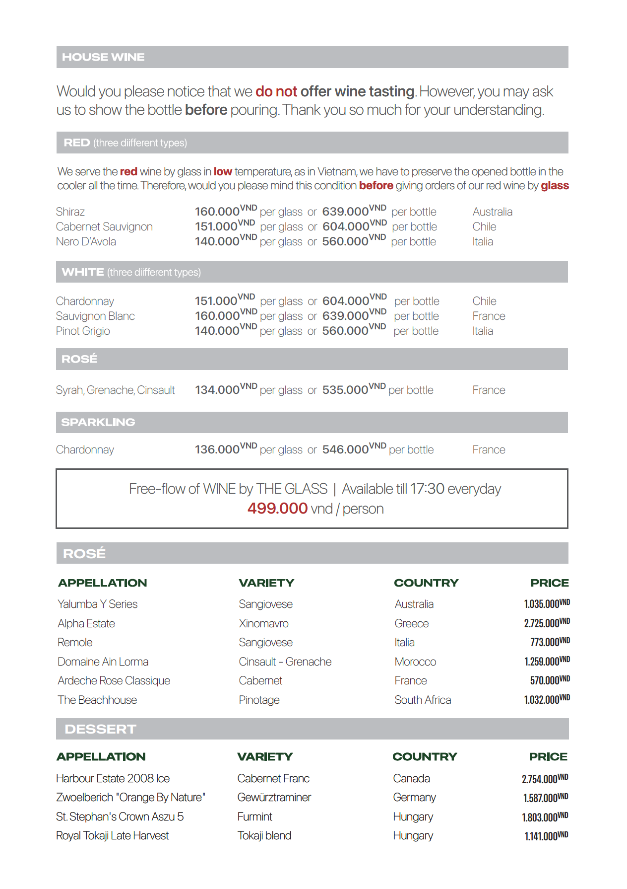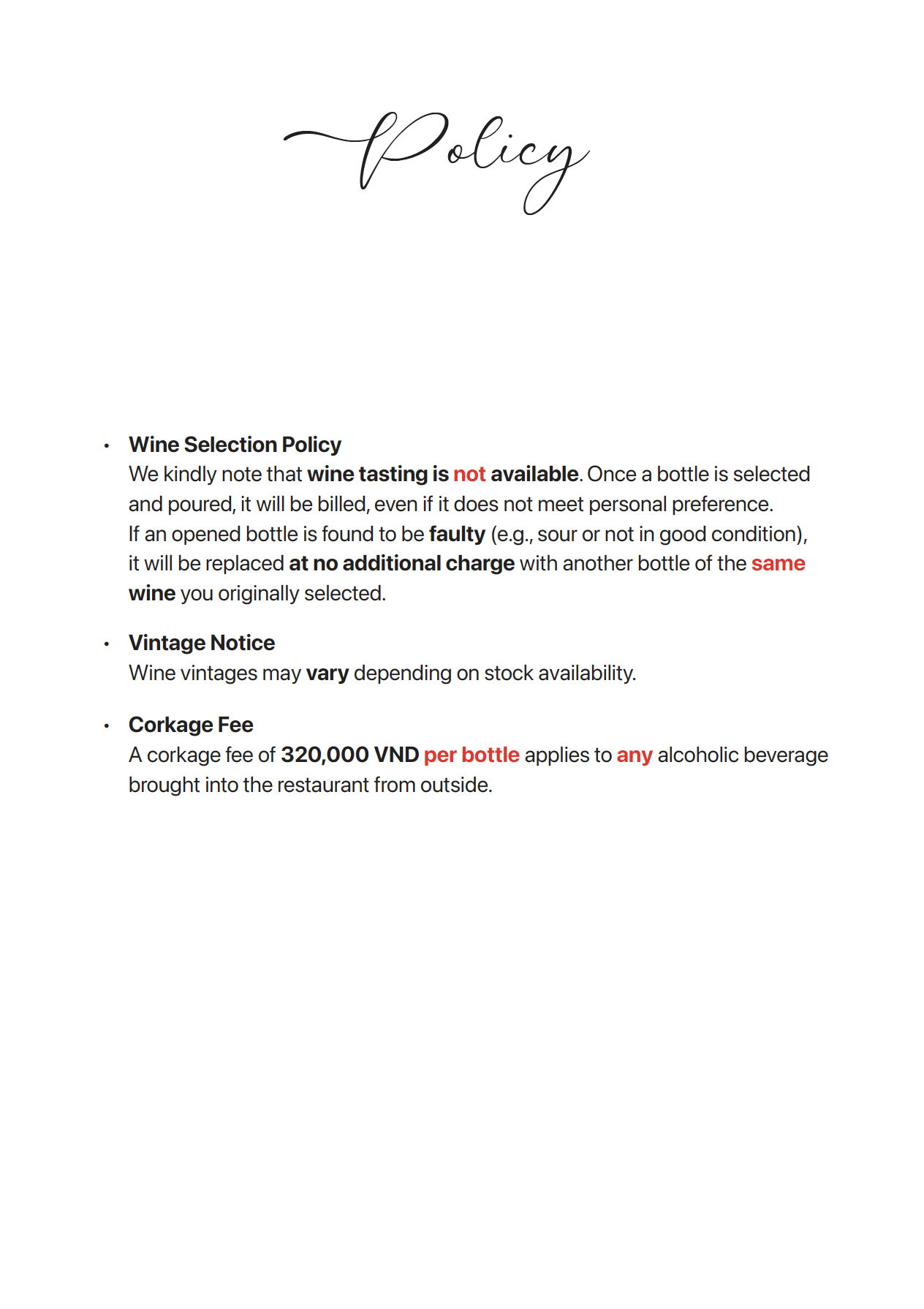 Enjoying wine has become a tradition throughout our three generations. Based on our passion as well as a very long time studying about wine, We are honored to serve you our family’s small collection of ninety one wine names including eight housewines, seven rosés, eight sparkling and four dessert wines from nineteen different countries. Pick one, feel the amazing character of it, find out the special story behind, and let it complete your night.